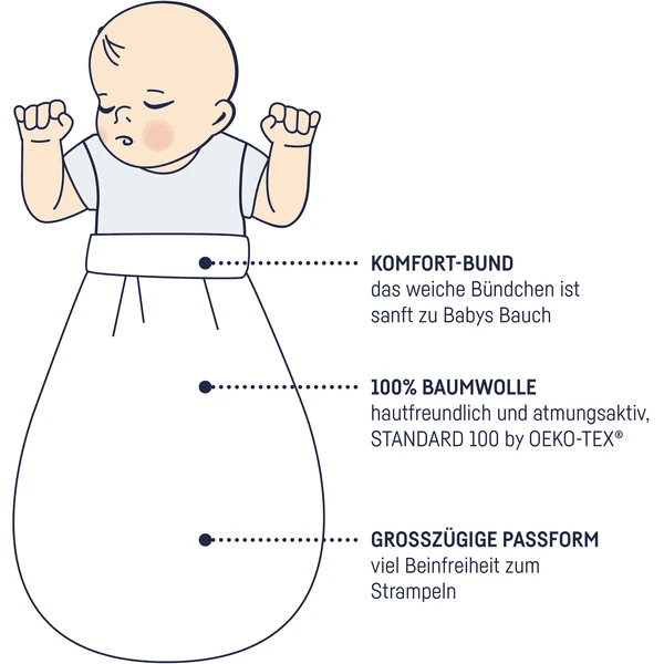 Der kleine Jerseybauchsack dient als Alternative zum Schlafsack für